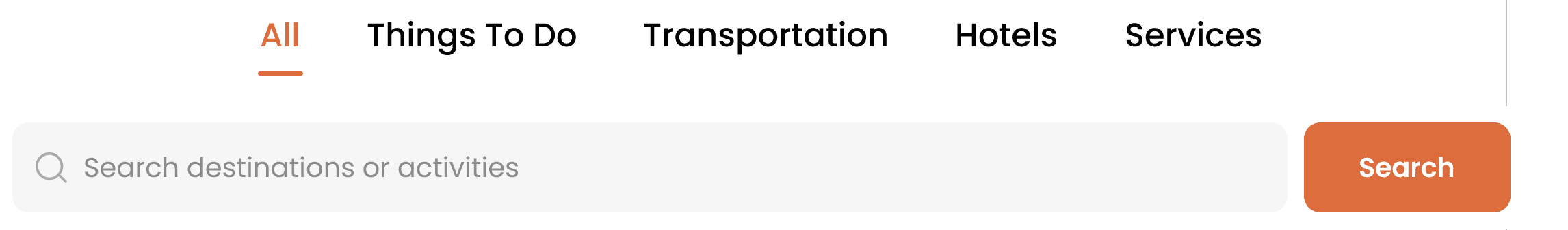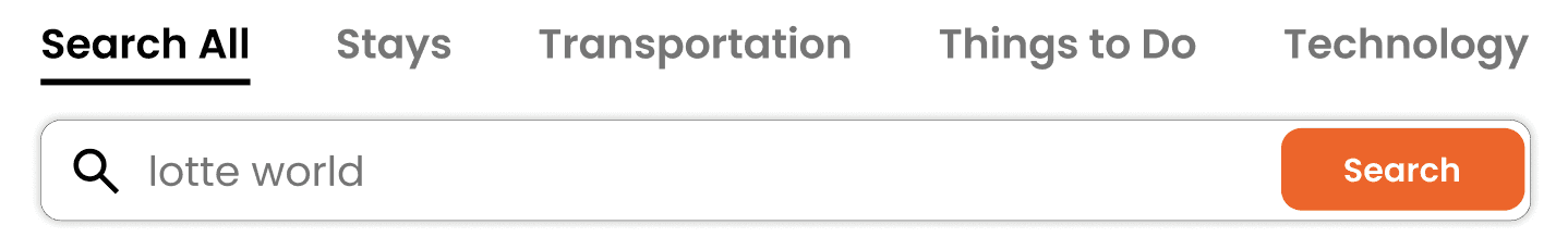 In the final iteration, I introduced icons alongside each category to reinforce meaning at a glance. I intentionally removed the shadow behind the search bar to maintain Klook’s clean visual language. When a category is selected, orange and bolded text provide clear visual feedback. The search bar is also responds dynamically, updating input fields based on the selected category to guide users toward more relevant results.
