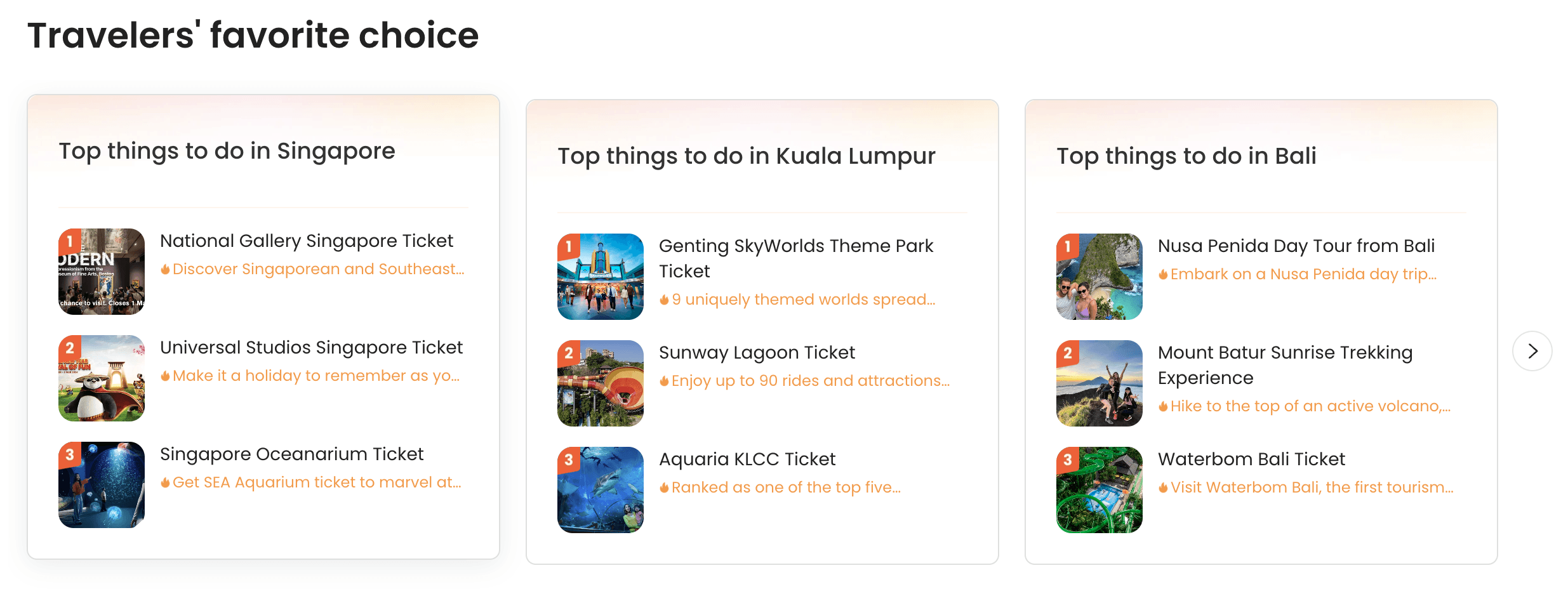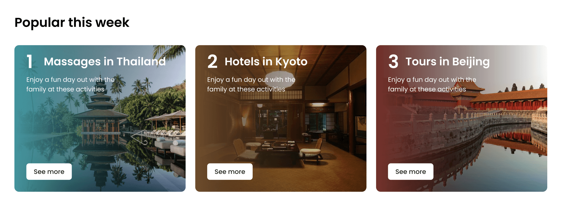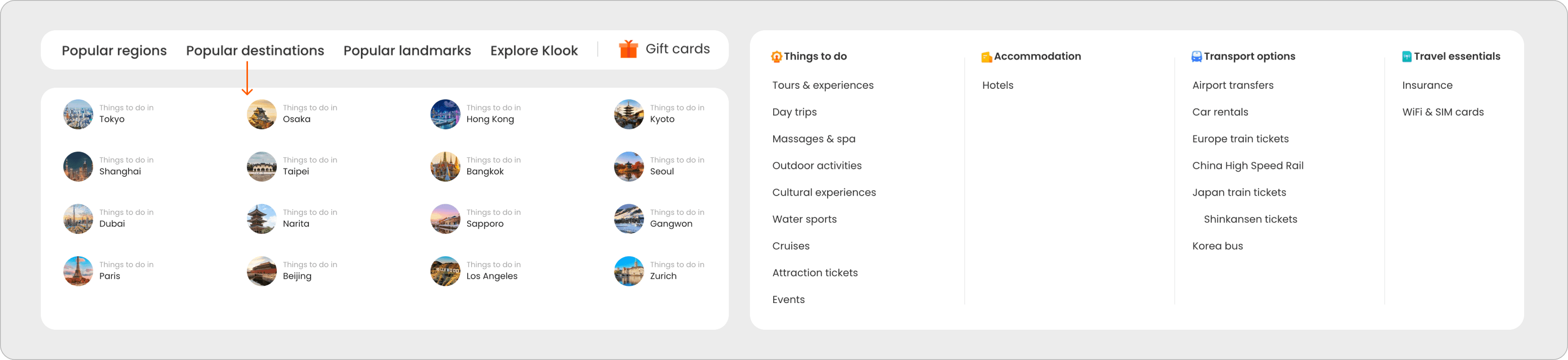 I also redesigned the Popular Destinations section into a card-based gallery that showcases the same key destinations previously housed in the dropdown. By presenting them as weekly experiences, the design highlights the breadth of Klook’s offerings while making the content more engaging and easier to digest.