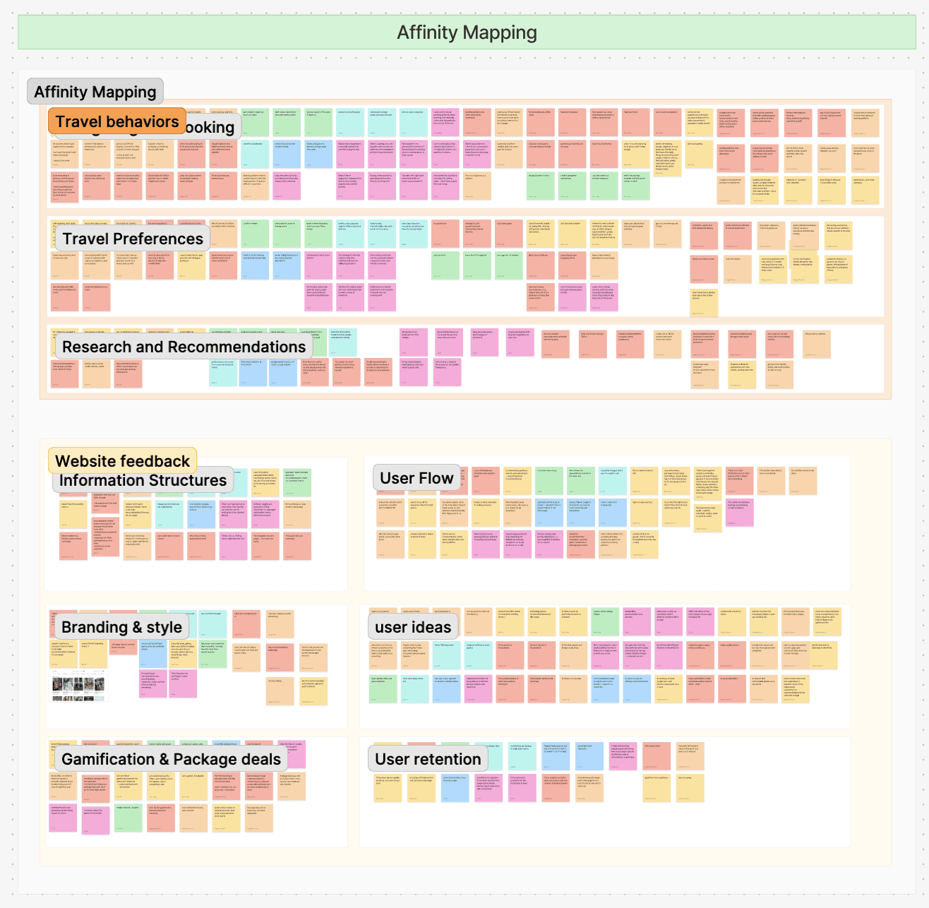 Interview insights were synthesized through affinity mapping, clustering coded themes to reveal key patterns, motivations, and opportunity areas.