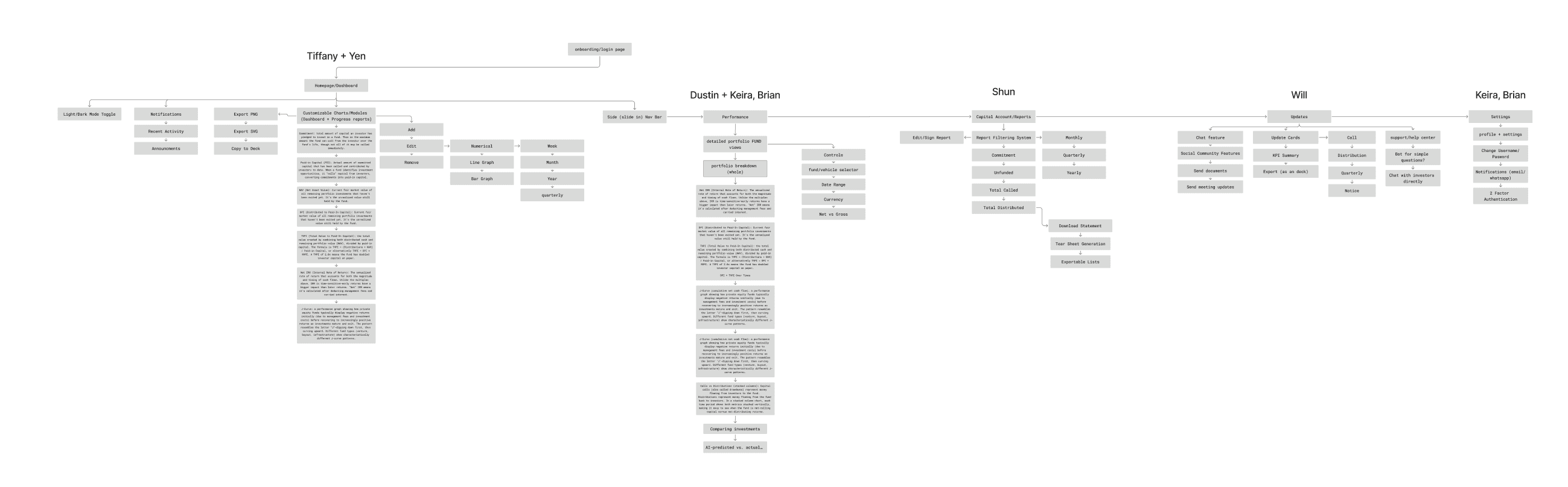 From our user research, we landed on these features via ideation and impact-feasibility matrix. I decided to focus on the Reports page that allowed LP investors to track the reports of their funds.